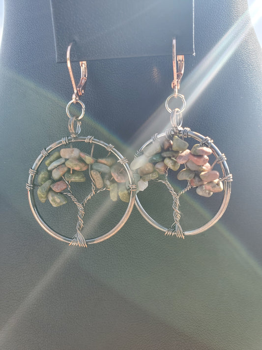 Copper Unakite Tree Earrings