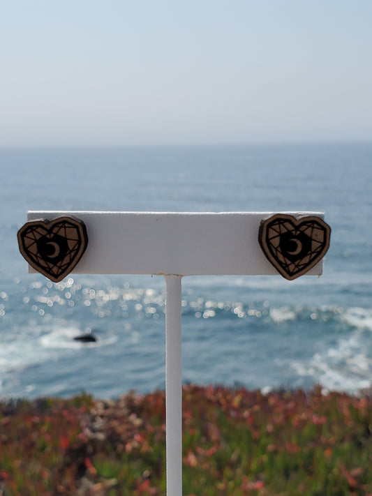 Wood Crystal Heart Earrings